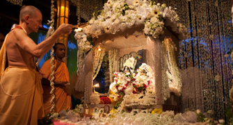The devotees of Lord Krishna celebrate the auspicious festival of Janmashtami by fasting and decorating their homes. The people worship the Lord all the night in temples, listening to his tales and waitingeagerlessly for his birth. The little children are dressed as Lord Krishna, Radha, Lord Shiva, Lord Hanuman, etc and charm the people with their cute smile. In the midnight, after performing the puja, people break their fasts by eating fruits or specially made sweets. In many parts of India, the magnificent idol of the Lord Krishna is placed in the swing and offered delicious food, especially 'Makkhan' (butter) and 'Dahi' (curd).