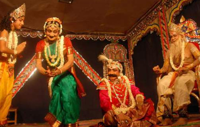 The life and glory of Lord Vishnu in his various avatars is depicted through this dance drama. It is performed at Narasimha Jayanthi and also during Gokulastami or Ramnavami.