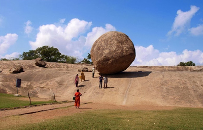 Once a bustling port of Tamil Nadu, the town of Mahabalipuram rose to prominence from 4th to the 9th century, during the heydays of the Pallava Kingdom. Centuries later, today Mahabalipuram with its numerous architectural marvels is a UNESCO World Heritage Site. From ancient temples to ruins of age-old shrines, the places to visit in Mahabalipuram will fill you with an absolute sense of pleasure. Also, an archaeologist's delight, this shore town boasts of a large number of ornate stone-carvings made out of uncut rocks. Such structures are sprinkled all over the complex that demands the awe of travellers who flock to the place almost round the year. Mahabalipuram's strategic location along the east coast of India and proximity to major cities of South India, make it an ideal weekend getaway. One of the most prominent places to visit in Mahabalipuram happens to be the Shore Temple. It is a complex full of temples and religious shrines. The Shore Temple is one of the oldest temples in India built out of blocks of granite, dating back to 700-728 CE. Shore Temple symbolises the excellent Pallava architecture and the maritime ambitions of the their rulers. Its small size belies its excellent proportion and the supreme quality of the carvings, many now eroded into vaguely impressionist embellishments.